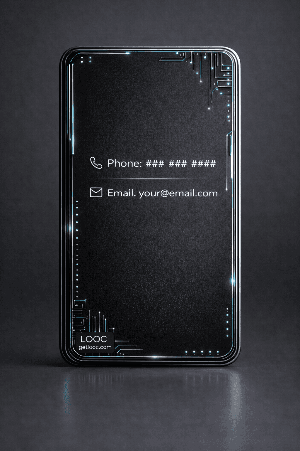Tap the card to flip and instantly view your digital profile. Looc makes sharing your information seamless and interactive.